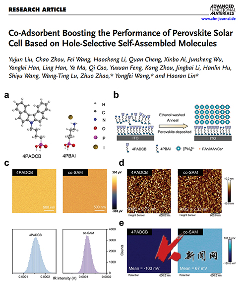 近日,米兰网页版材料与冶金学院赵卓副教授、王永飞副教授联合深圳职业技术大学林浩然副教授,以米兰网页版为第一署名单位,在国际知名期刊《Advanced Functional Materials》(1区top期刊,2024年影响因子:18.5)发表高水平研究论文《Co-adsorbent boosting the performance of perovskite solar cell based on hole-selective self-assembled molecules》(https://doi.org/10.1002/adfm.202421576),米兰(中国)官方入口2022届研究生刘玉军与2020届研究生周超为共同第一作者。
