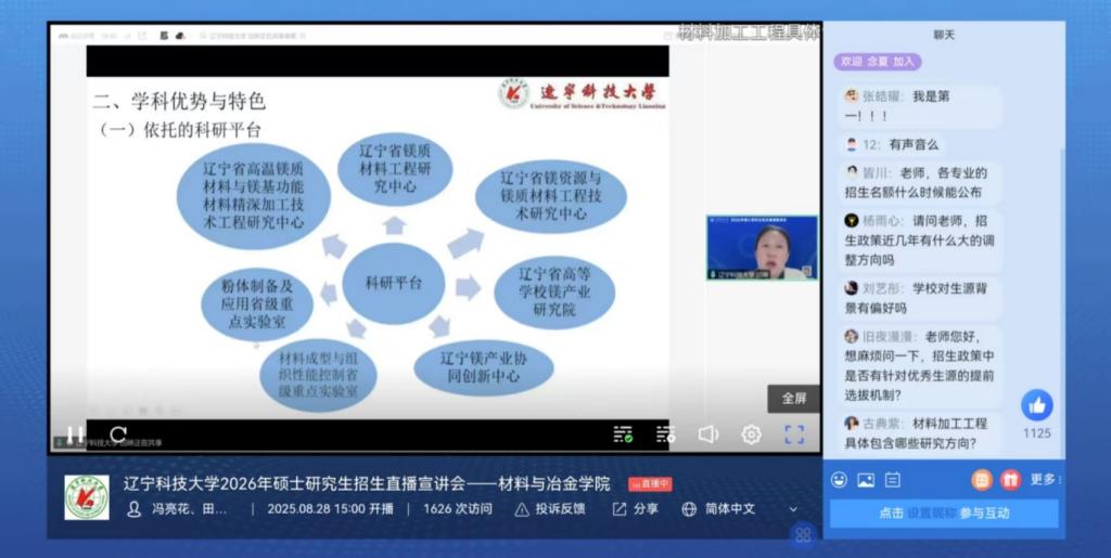 为确保宣讲效果,学院精心组建了专业的宣讲团队。田琳教授、冯亮花教授、宁哲副教授分别就材料科学与工程、动力工程与工程热物理、冶金工程三个学科的设置特色、师资队伍、科研方向等内容进行了系统介绍,并就考生及家长广泛关注的研究生导师双选机制、考研备考建议、实验条件、住宿环境以及就业前景等问题作了详尽解答,助力考生全面了解材冶学院的研究生培养体系与2026年招生政策。