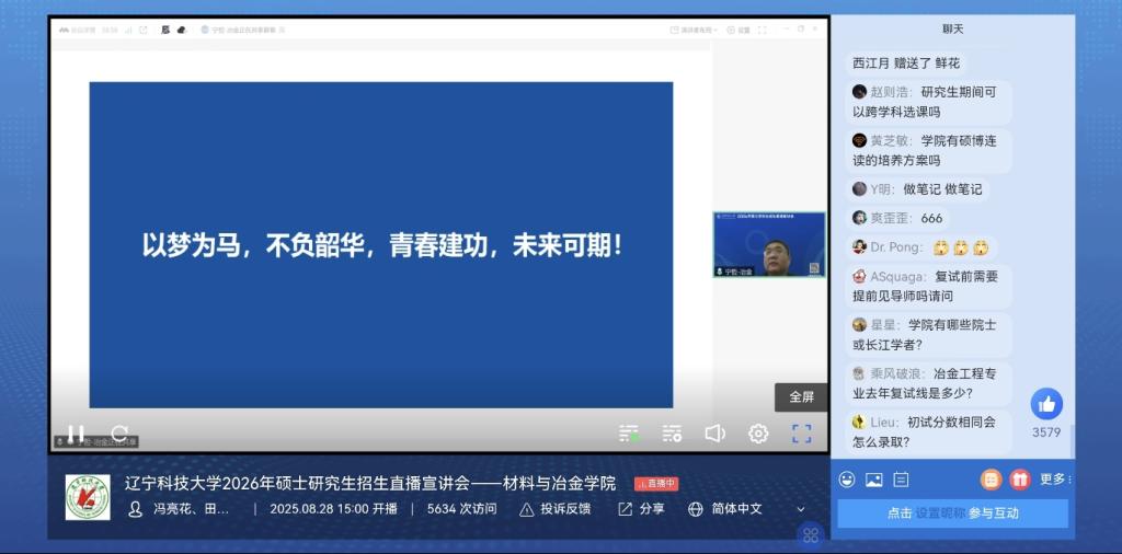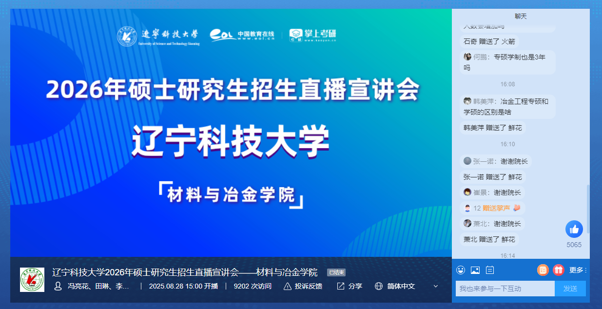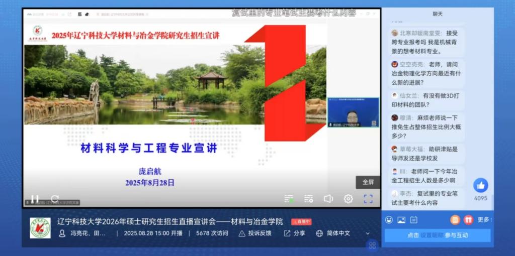 8月28日,米兰网页版材料与冶金学院成功举办了2026年研究生招生线上直播宣讲会。本次宣讲会由学院副院长庞启航担任主持人。
