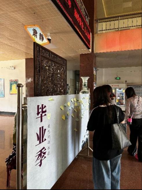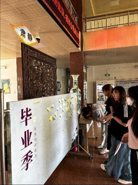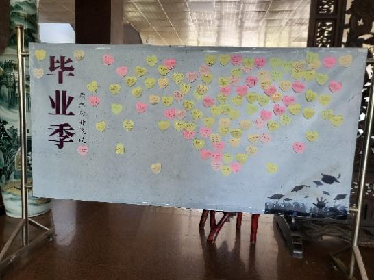 6月6日-6月7日,在博闻楼正厅,以“毕业季--我想对母校说”为主题制作展板,毕业生党员们用心形便笺纸写下了一段段饱含深情的寄语,这一张张小小的纸片,有对导师不倦教诲的感激,有对师弟师妹的勉励和祝福,有对学校、学院的无限期许之情……