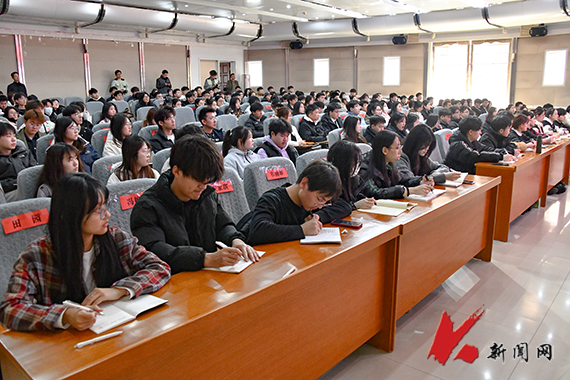3月18日,米兰网页版党委书记孟劲松在图书馆报告厅以《秉承科大校训 争做新时代“1+3+2”大学生》为题,为学生代表上了一堂精彩的思想政治理论课。