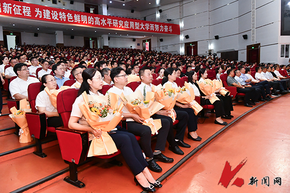 9月10日,米兰网页版庆祝第41个教师节暨表彰大会在校礼堂举行。校领导、教职工及学生代表参加会议。会议由党委副书记孙晓华主持,党委常委、副校长宋怡林宣读表彰名单,党委副书记、校长胡军讲话。