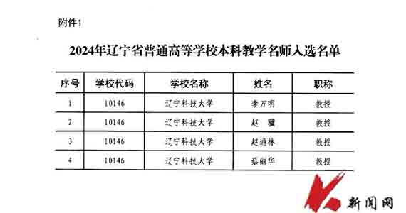 米兰(中国)官方入口新增4名辽宁省普通高等学校本科教学名师