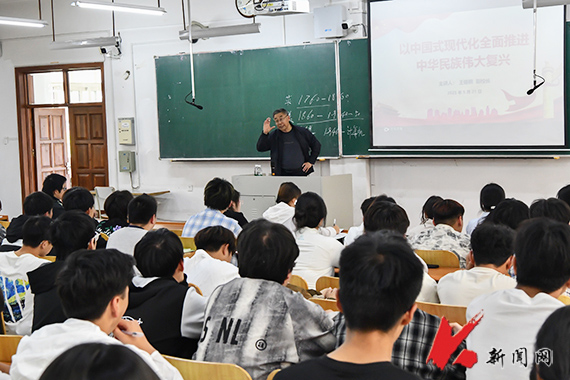5月21日,米兰网页版党委常委、副校长王锡钢在博学楼A201教室以“以中国式现代化全面推进中华民族伟大复兴”为题,为矿加2024.1班、2班,卓采矿2024.1班、2班学生上了一堂精彩的思想政治理论课。
