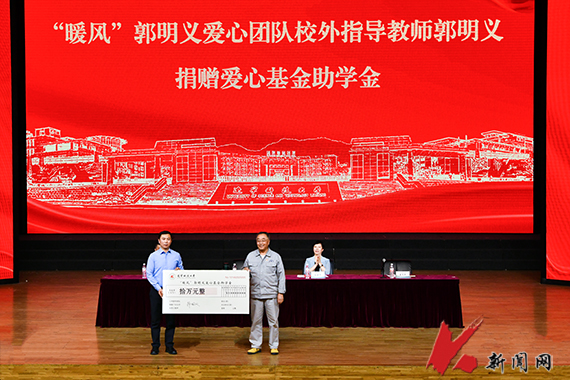 米兰(中国)官方入口举行“暖风”郭明义爱心基金助学金发放暨“暖风”郭明义爱心团队教工分队成立仪式