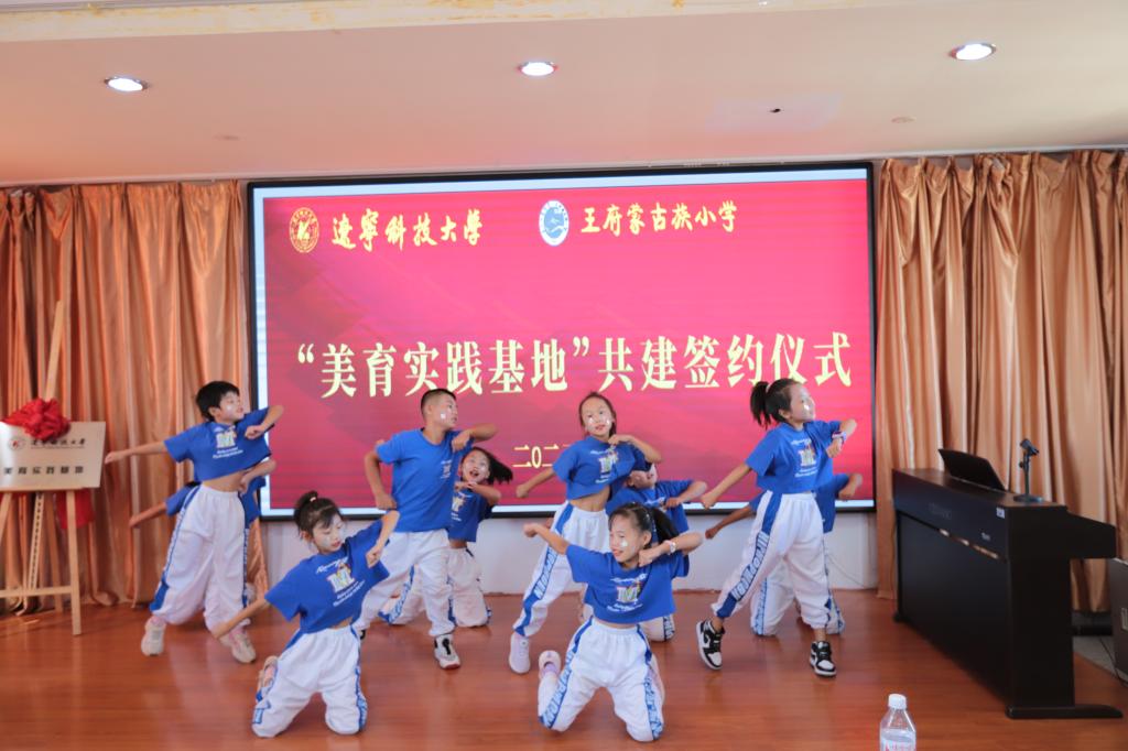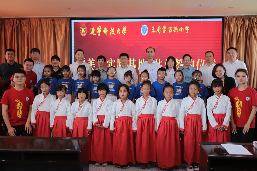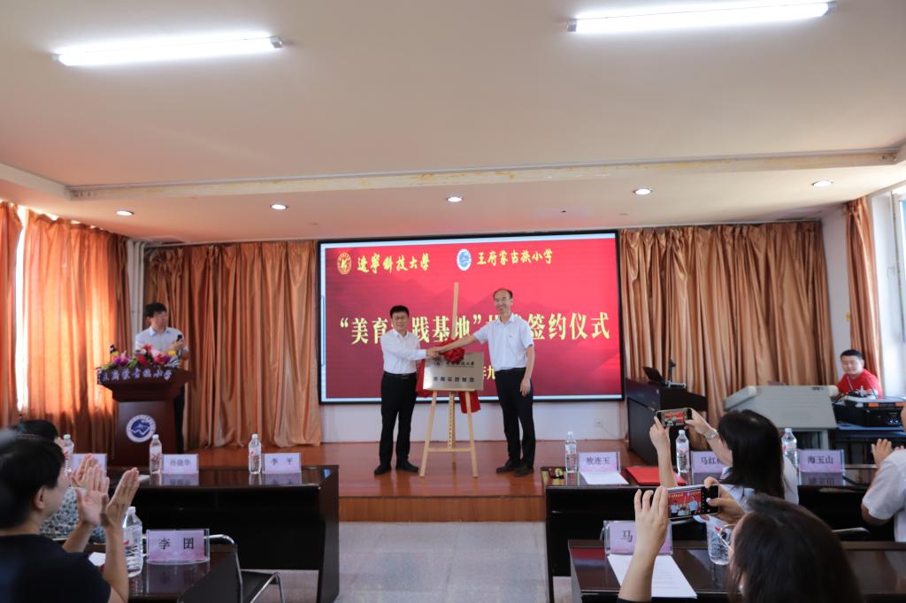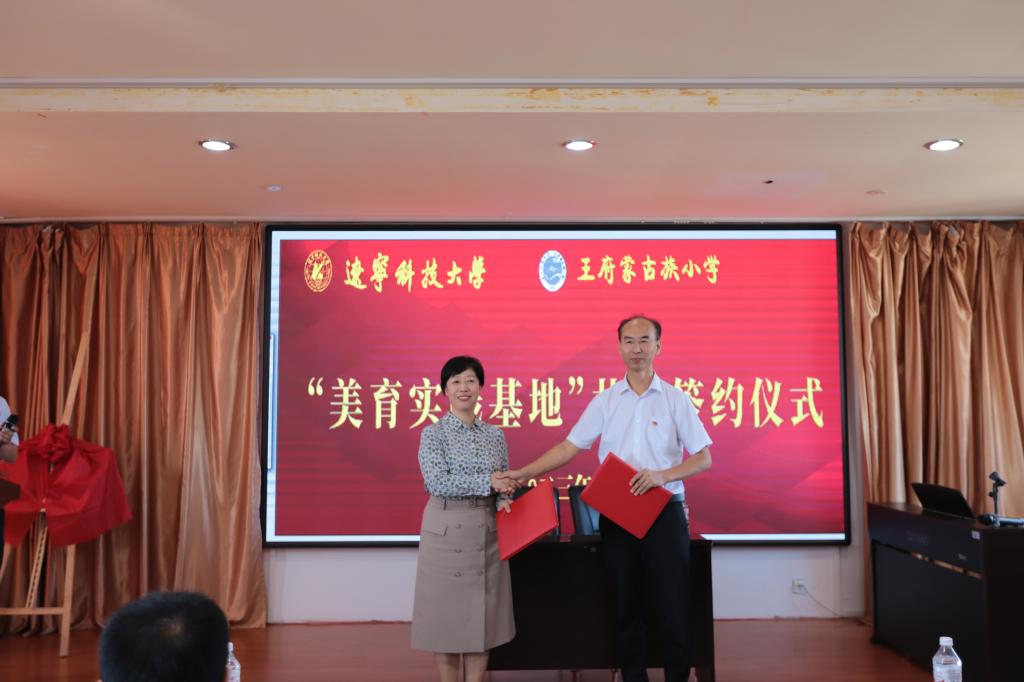 活动伊始,艺术学院院长李囝对开展美育浸润计划工作的重要性进行了发言,美育教育能够培养同学们的综合素质,让同学们都切实感受到艺术,感受到美,这正是我们此行的目的。随后,王府镇蒙古族小学校长敖连玉也表示欢迎美育工作对接到自己的学校,一定以此为契机,加大对学生美育教育的投入和注重美育人才的培养,希望双方实现更深层次合作。之后,米兰网页版党委副书记孙晓华与王府镇蒙古族小学现场签约,双方签署了“美育实践基地”合作协议,接下来,米兰网页版党委书记李平与王府镇蒙古族小学进行了“美育实践基地”揭牌仪式。