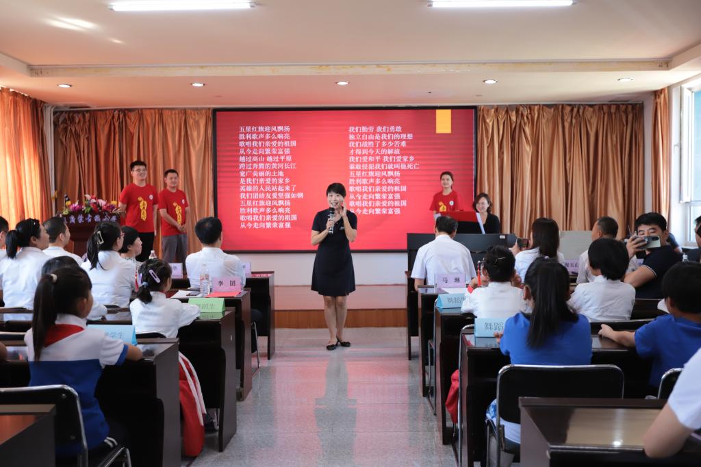 在此期间,艺术学院师生和蒙古族小学学生共同开展了“美育浸润”主题节目展演。首先,由艺术学院曲艺系学生代康康、刘星宇表演快板《天安门广场看升旗》,获得了在座师生的阵阵掌声,在与同学们的互动下,大家共同学习,对曲艺艺术和传统文化有了更加深入的了解;其次,播音与主持艺术专业张彦如老师给同学们朗诵古诗词《登鹳雀楼》、《天净沙 秋思》、《将进酒》,带着同学们置于诗词的世界,在语言中感受美,爱上美;期间,蒙古族小学学生表演了舞蹈《有个姑娘》、《梦想家》,最后,由艺术学院副院长马琳钢琴伴奏,院长李囝带领大家齐唱《歌唱祖国》,将活动气氛推向了高潮,置身其中激发起孩子们爱国的情怀,拉进了心与心的距离,把美育教育浸润到每个孩子的心里。