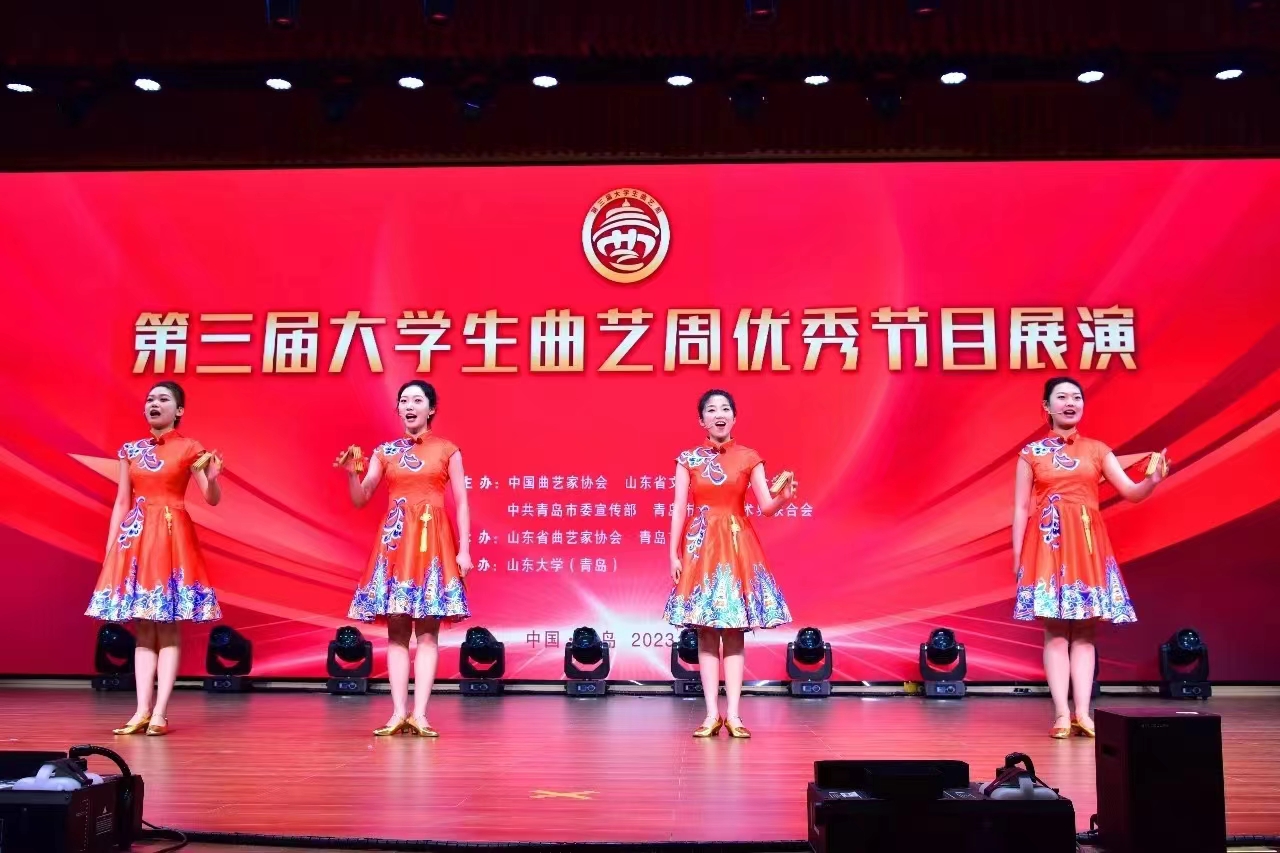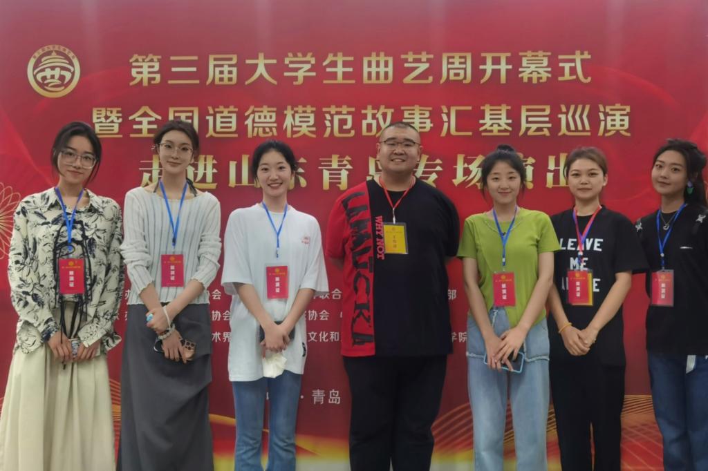 5月19日-21日,第三届大学生曲艺周在青岛举行。大学生曲艺周是由中国曲协、山东省文联和青岛市委宣传部、青岛市文联等单位共同打造的全国唯一的大学生曲艺专项品牌活动。本次活动由山东省曲协、青岛市曲协、中共李沧区委宣传部承办。米兰网页版艺术学院选送作品群口快板《中国诗民族魂》、相声《女神养成记》入选展演,师生7人赴青岛参加曲艺周。